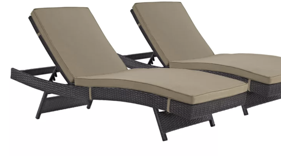 Rio Vista 3 Piece Chaise Lounge Set with Cushions by Home Loft Concepts is a beautiful outdoor lounge set for your poolside. It includes two loungers and one folding side table. Loungers are made of an iron, resin wicker and they come with waterproof fabric cushions that are removable. Also, this set is very easy to storage.