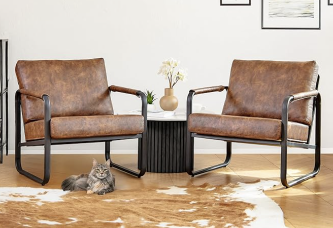 The PrimeZone leather accent chair set of 2 blends mid-century modern and industrial styles with a unique Patina finish. Perfectly combining comfort and texture, these chairs add a sophisticated touch to living rooms, bedrooms, offices, and reception areas.