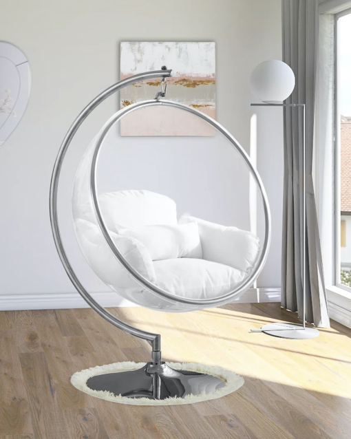 Escape into your own cozy haven with the Luna Acrylic Swing Bubble Accent Chair. Designed with a sleek, egg-style acrylic seat, this modern chair instantly elevates any living room, bedroom, or lounge area. Moreover, the soft fabric-covered cushions offer exceptional comfort, while the sturdy chrome metal base ensures lasting support. Best of all, its playful yet stylish design creates the perfect spot to unwind in total peace.