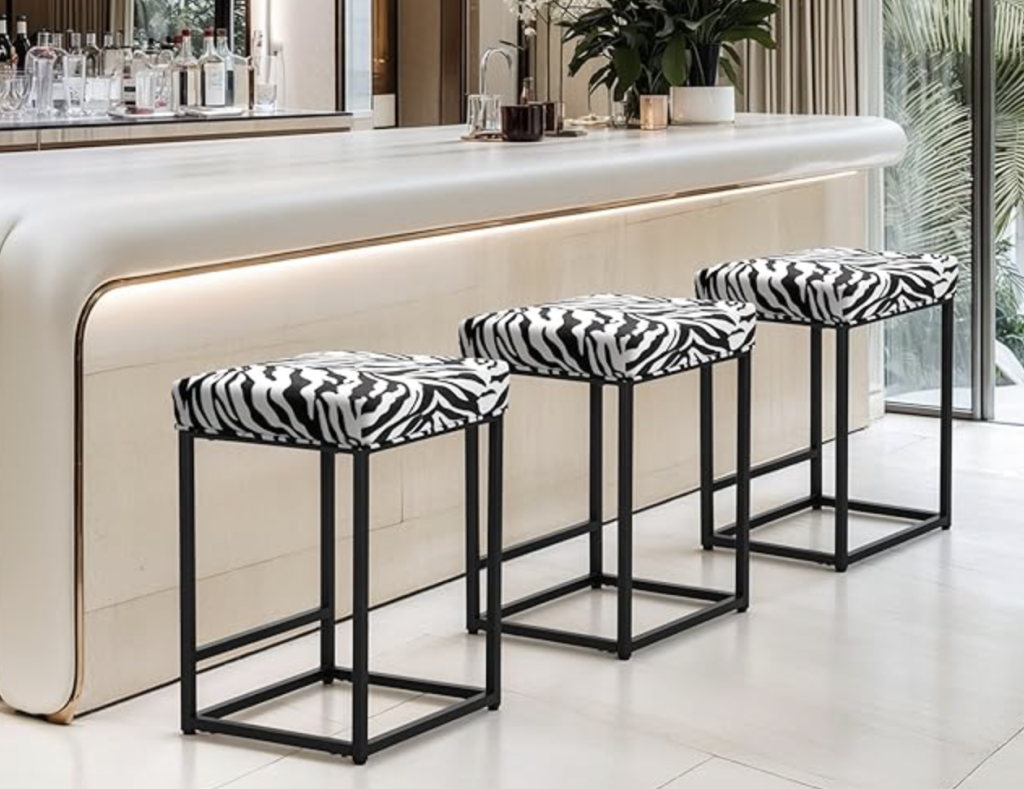 Make a statement with these 24″ zebra-striped bar stools, designed to add a bold touch of modern flair to kitchens, home bars, or dining areas. Featuring plush 3.5″ foam cushions and ergonomic footrests, they offer all-day comfort—perfect for everything from casual breakfasts to long conversations. Built with durable materials and a compact, space-saving frame, these stools also easily tuck under counters while providing sturdy, stylish seating that fits effortlessly into any decor.