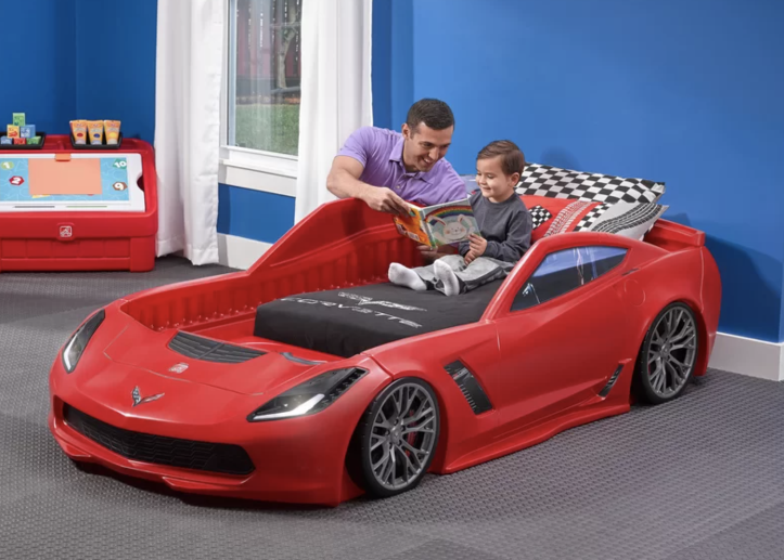 Corvette Car Toddler Bedis a nice choice for your toddler son’s bedroom if you want to bring a sense of adventure and excitement into a room. The frame of bed is High-density polyethylene (HDPE) plastic.
